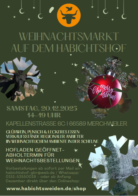 SAMSTAG, 20.12.2025 I 14-19 Uhr I Hofladen Habichtshof I Kapellenstraße 6c 66589 Merchweiler